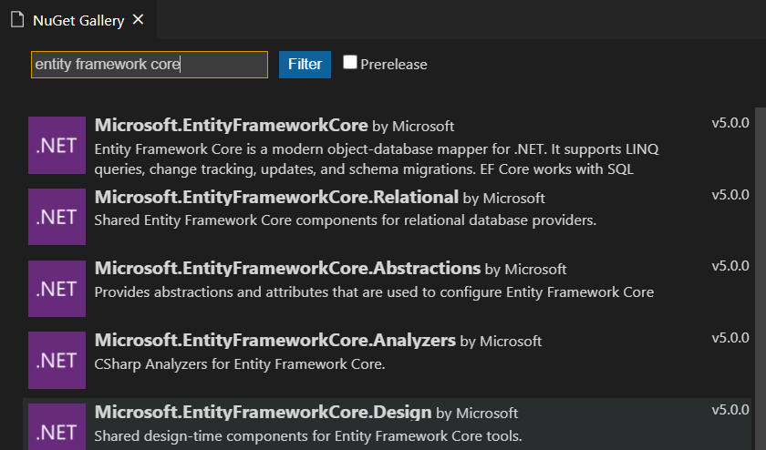 Then, open the Command Palette and search NuGet Gallery in order to install the following packages:
