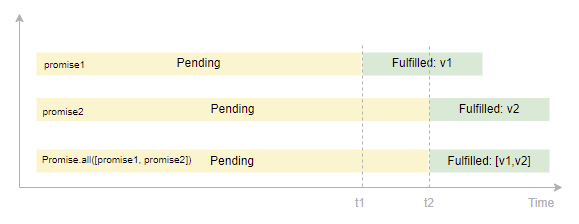 Note that, in this first approach, the two promises are awaited in sequence. There is, therefore, no similarity with the approach that uses Promise.all. Let’s see why.